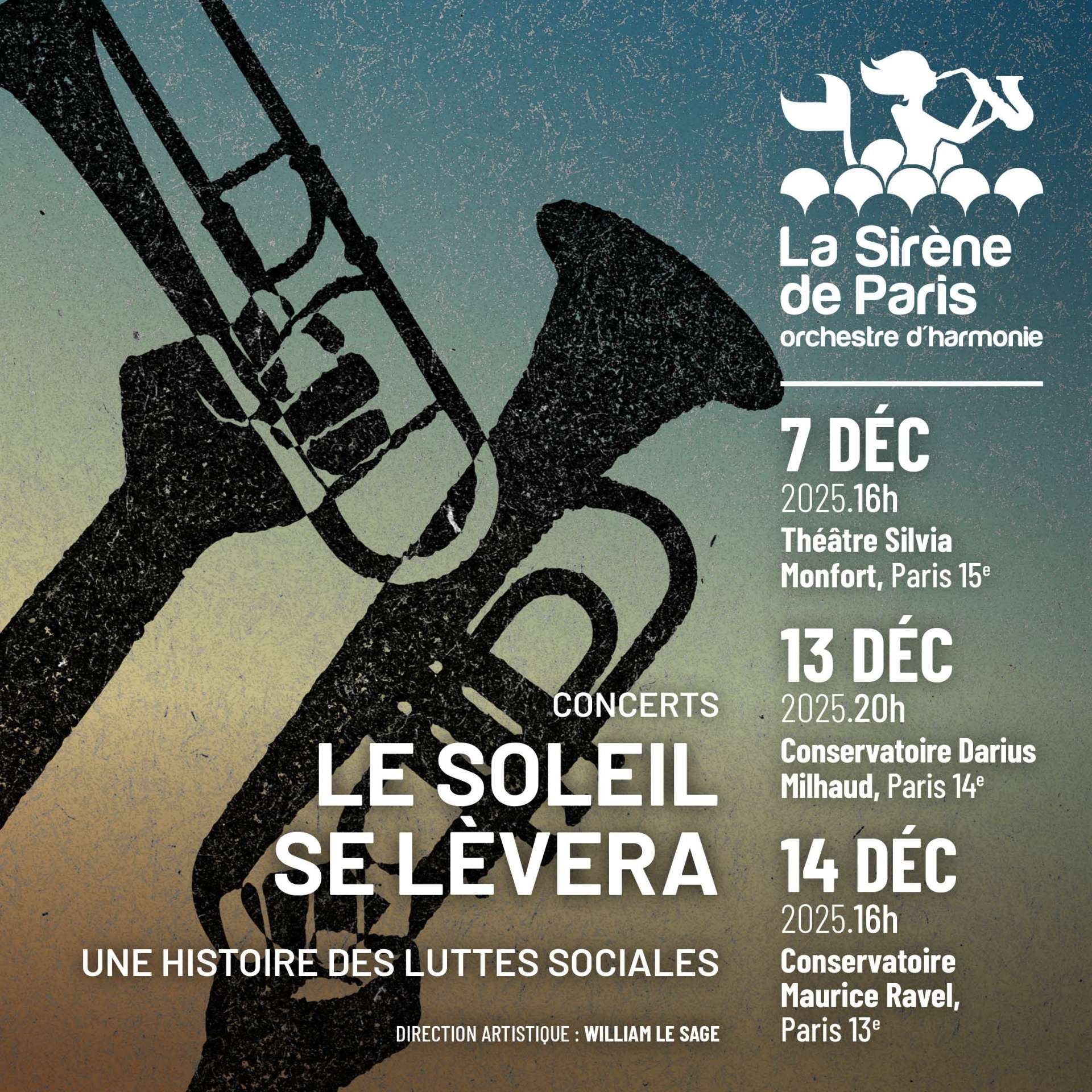 Archives Tous les évènementsAnimationAtelierConcertConférenceExpositionHors les mursMasterclassRencontreScène ouverteSpectacle musical 06 Sept. 2025 18:15 Concert La Sirène anime le forum des associations Terminé MPAA Broussais La Sirène de Paris 29 Juin 2025 17:30 Concert Sirène en Seine Terminé Rue Prévost Paradol La Sirène de Paris 22 Juin 2025 18:00 Concert Sirène en Seine Terminé Parvis de la Mairie du 14E La Sirène de Paris 21 Juin 2025 15:00 Concert Sirène en Seine Terminé Kiosque du Parc Montsouris ©️Agathe Tabeaud 13 Avr. 2025 17:30 Concert La Route de la Soie Terminé Conservatoire Maurice Ravel ©️Agathe Tabeaud 06 Avr. 2025 16:00 Concert La Route de la Soie Terminé Conservatoire Darius Milhaud ©️Agathe Tabeaud 08 Déc. 2024 17:00 Concert Histoires de Sirènes - CMA14 Terminé Complet Musique classique Musique contemporaine Musique de film Pluridisciplinaire Conservatoire Darius Milhaud ©️Agathe Tabeaud 07 Déc. 2024 19:00 Concert Histoires de Sirènes - Ivry sur Seine Terminé Complet Musique classique Musique contemporaine Musique de film Pluridisciplinaire Théâtre Antoine Vitez ©️Agathe Tabeaud 22 Nov. 2024 19:30 Concert Histoires de Sirènes - MPAA Terminé Musique classique Musique contemporaine Musique de film Pluridisciplinaire MPAA St Germain 14 Sept. 2024 17:00 Concert Animation du forum des associations Terminé MPAA Broussais 07 Sept. 2024 15:30 Animation Animation au centre sportif Elisabeth Terminé Amateurs Centre Sportif Elisabeth 15 Juil. 2024 14:40 Relais de la flamme Terminé 29 Juin 2024 17:30 Concert 150 ans de La Sirène de Paris Terminé Amateurs Kiosque du Luxembourg 23 Juin 2024 16:00 Concert Italie-Brésil 3-2 Terminé Amateurs Football Pluridisciplinaire Théâtre Stade Louis Lumière 22 Juin 2024 18:30 Concert Le Pavillon en fête Terminé Amateurs Le Pavillon de la Sirène 02 Juin 2024 14:00 Hors les murs / Scène ouverte Scène ouverte Terminé Amateurs Kiosque du Parc Georges Brassens 05 Mai 2024 17:00 Concert Musiques Olympiques Terminé Amateurs Conservatoire Darius Milhaud 28 Avr. 2024 19:00 Concert Musiques Olympiques Terminé Amateurs Halle des Blancs Manteaux Agathe Tabeaud 11 Déc. 2023 20:30 Concert Carmina Burana Terminé Amateurs Musique classique Eglise Saint Marcel Agathe Tabeaud 10 Déc. 2023 17:00 Concert Carmina Burana Terminé Amateurs Musique classique Eglise Saint Marcel Agathe Tabeaud 09 Déc. 2023 20:00 Concert Carmina Burana Terminé Amateurs Musique classique Eglise Saint Marcel 07 Oct. 2023 15:00 Concert Scène ouverte aux amateurs Terminé Amateurs Emmanuelle Mersier 09 Sept. 2023 14:00 La Sirène au forum des associations Terminé